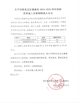 关于拟推选卫生健康系 2024-2025 学年国家奖学金二次答辩候选人公示