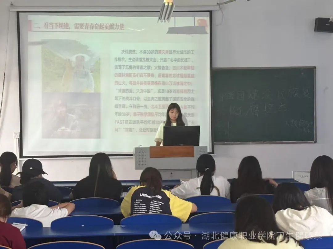 团课上,团支书结合历史与现实,从国家发展战略、青年责任使命等方面深入阐述。通过生动的案例和详实的数据,展现了新时代强国建设、民族复兴征程中的伟大成就与艰巨任务,强调青年学子应将个人理想融入国家发展大局。互动环节中,同学们踊跃发言,分享自己对担当使命的理解,表达了以专业所学服务社会、助力健康中国建设的决心。