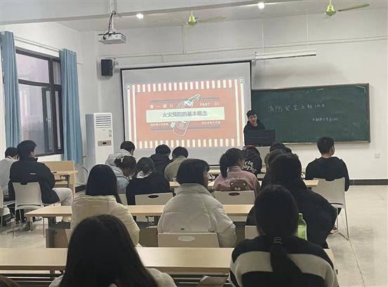 主题班会上,辅导员组织学生观看消防安全警示教育片,用生活中的真实案例,让学生知道火灾给家庭、社会及国家带来的危害,叮嘱他们要自觉遵守消防法规,谨记119火警电话,学习预防火灾、报警避难及灭火自救的常识。辅导员在班会上生动演示了一些自救方法,如用湿毛巾捂住口鼻、压低身子跑行、拨打119火警电话等。