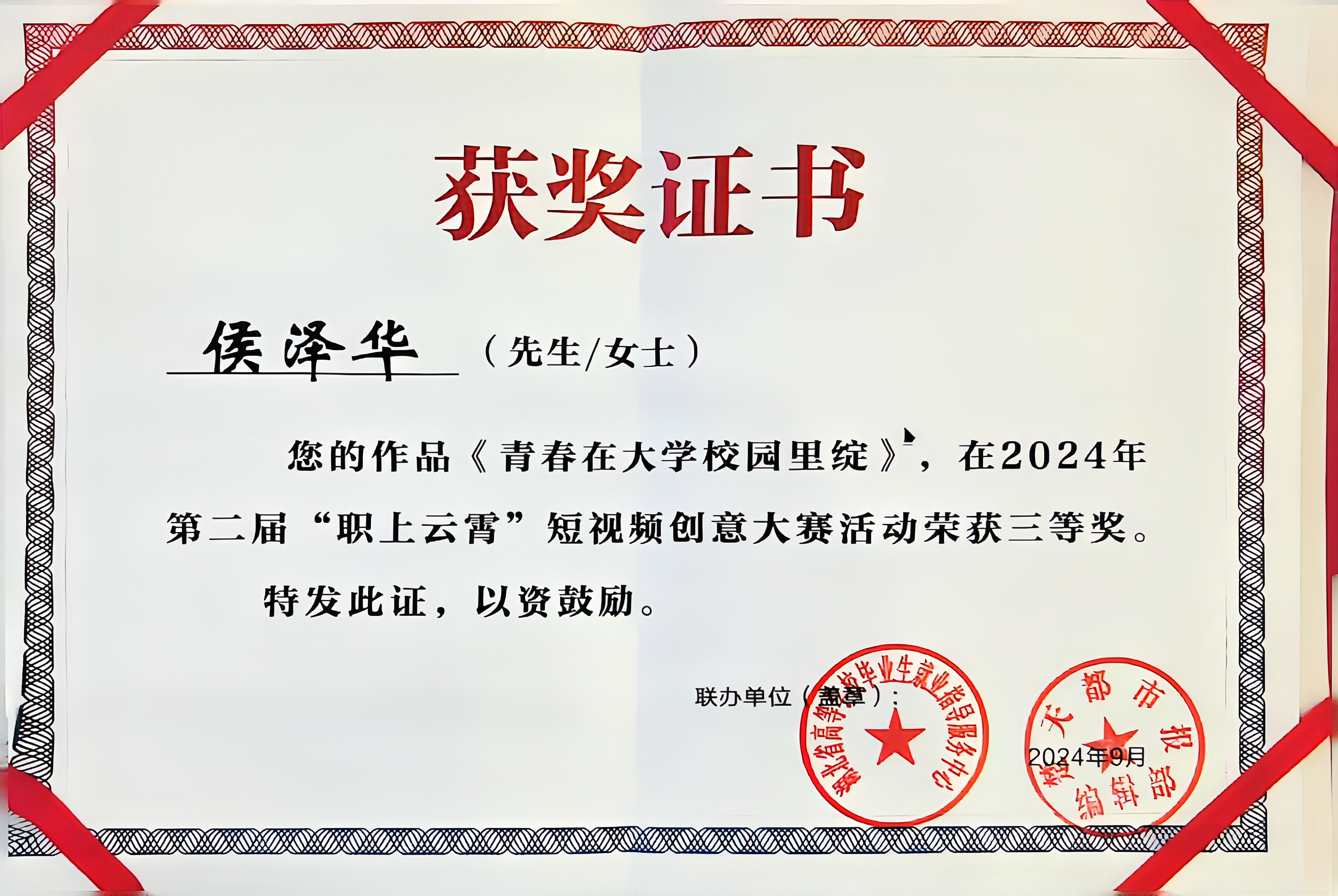 (获奖证书)