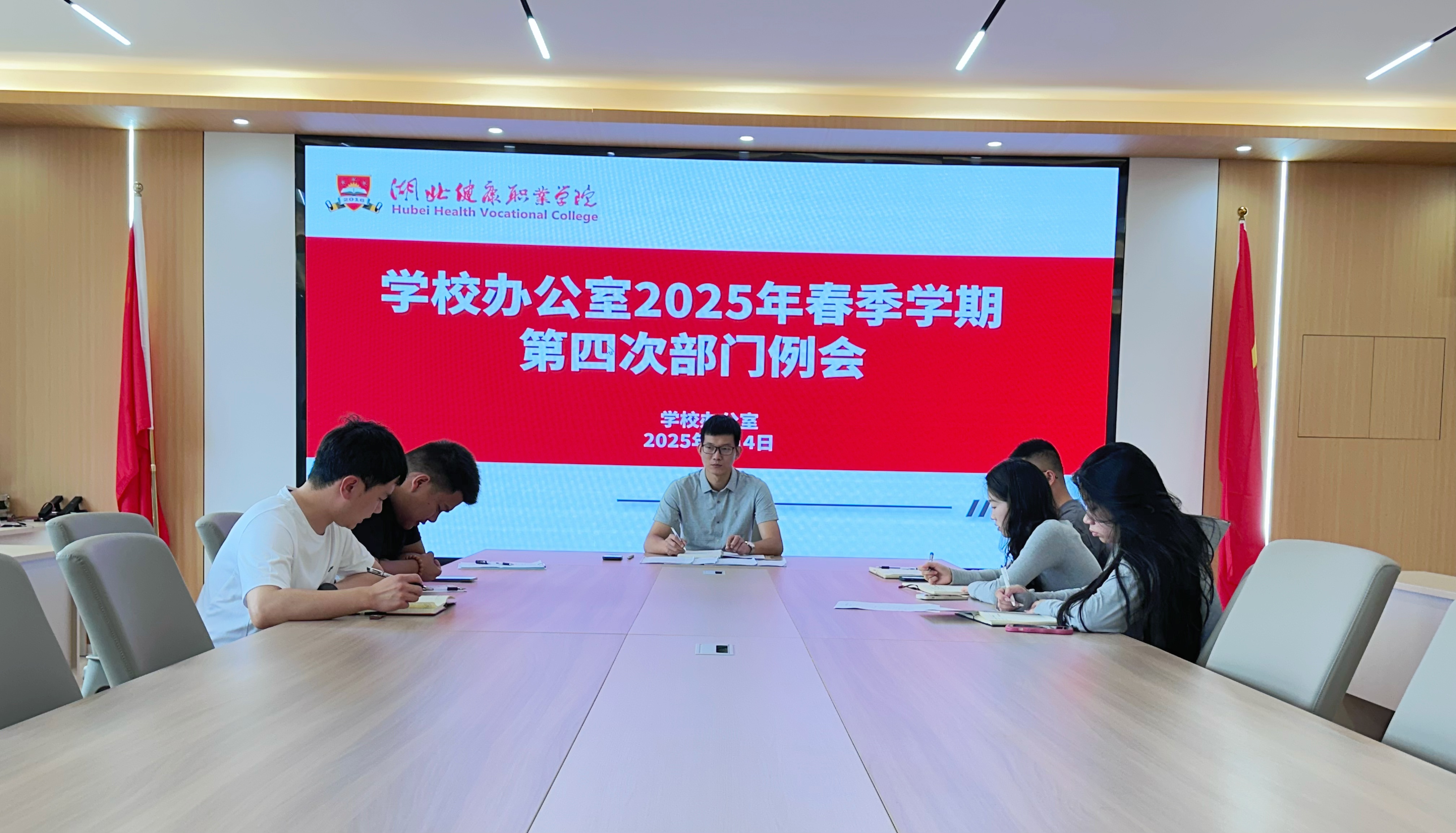 6月4日上午,学校办公室于学校会议室召开第四次部门例会,办公室全体人员参加会议,学校办公室主任李鹏主持会议。