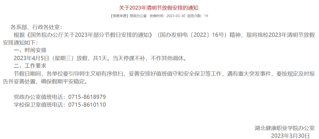 关于2023年清明节放假安排的通知
