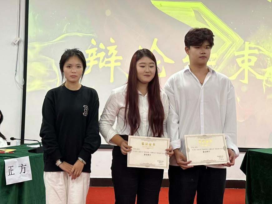 经评选,反方一队获得本届辩论赛一等奖。反方三辩李宇翔同学与正方二辩徐静娅荣获“最佳辩手”称号。