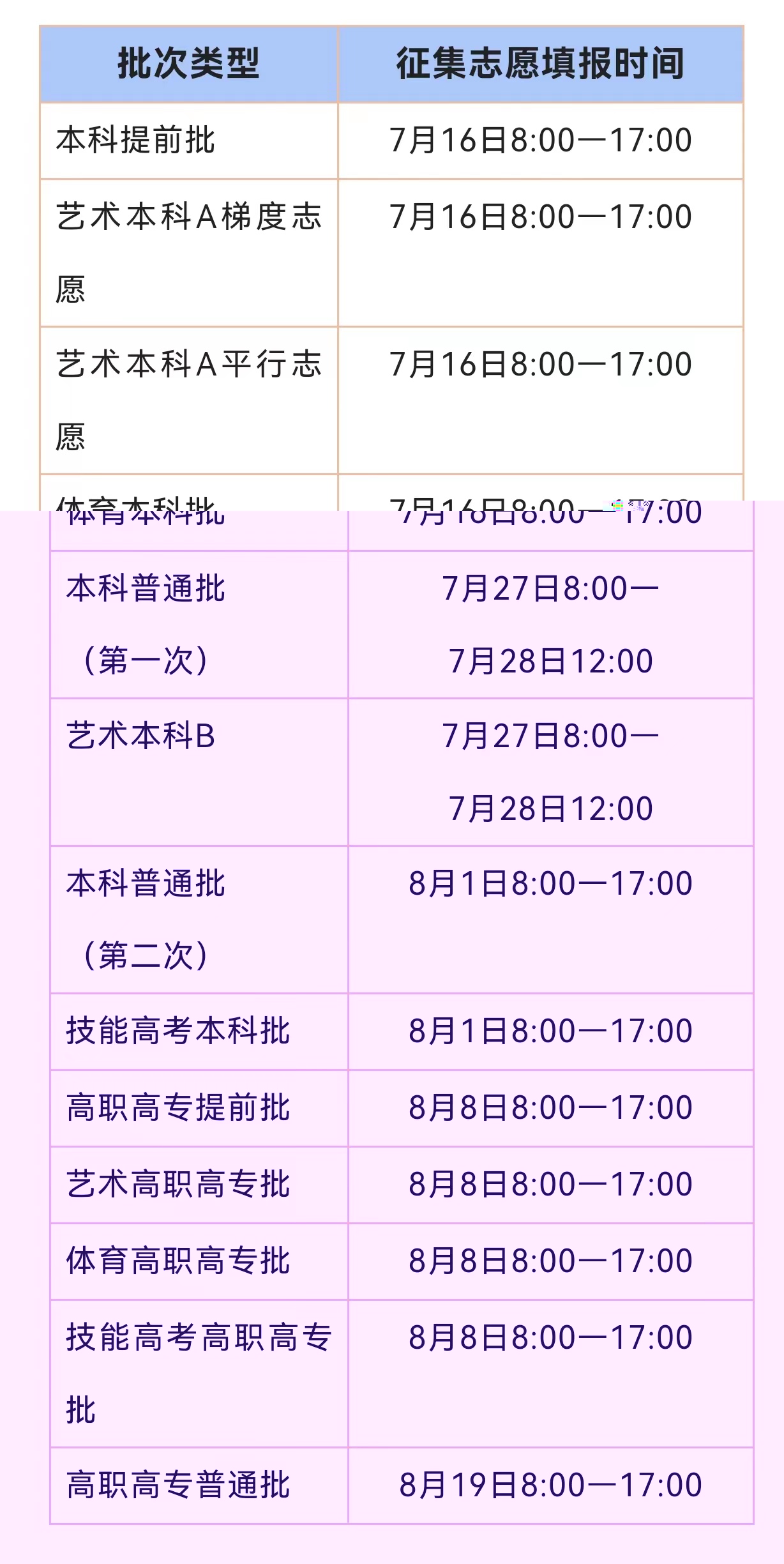 湖北省2022年普通高校招生录取各批次考生填报征集志愿时间表