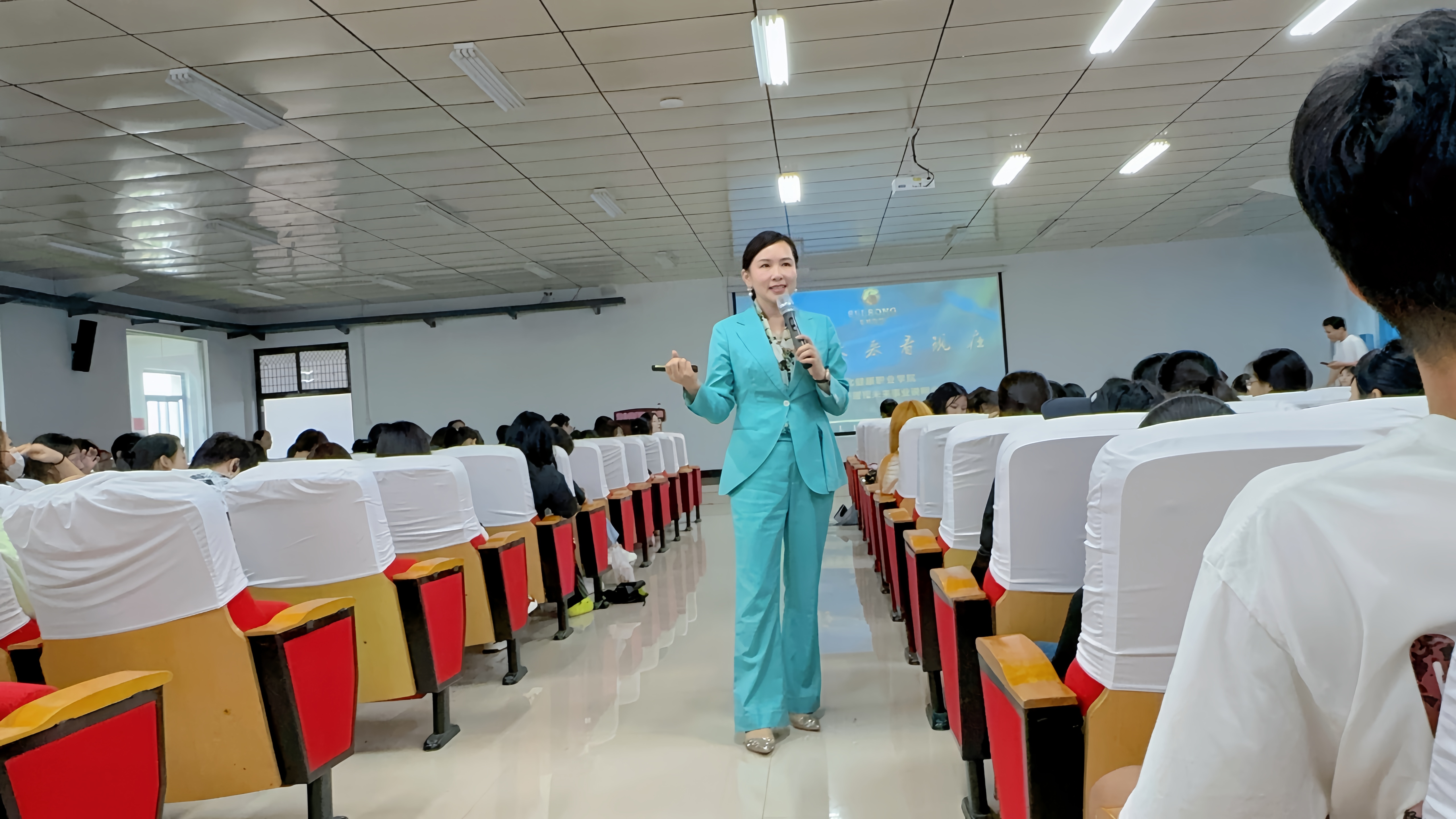 朱绿萍以“站在未来看现在”为主题做了专题演讲,她从公司概况、优势、企业文化、未来发展规划等做了详细介绍,并结合自身成长经历与人生感悟,勉励青年大学生既要脚踏实地、练就真本事,又要立志高远、报效祖国。