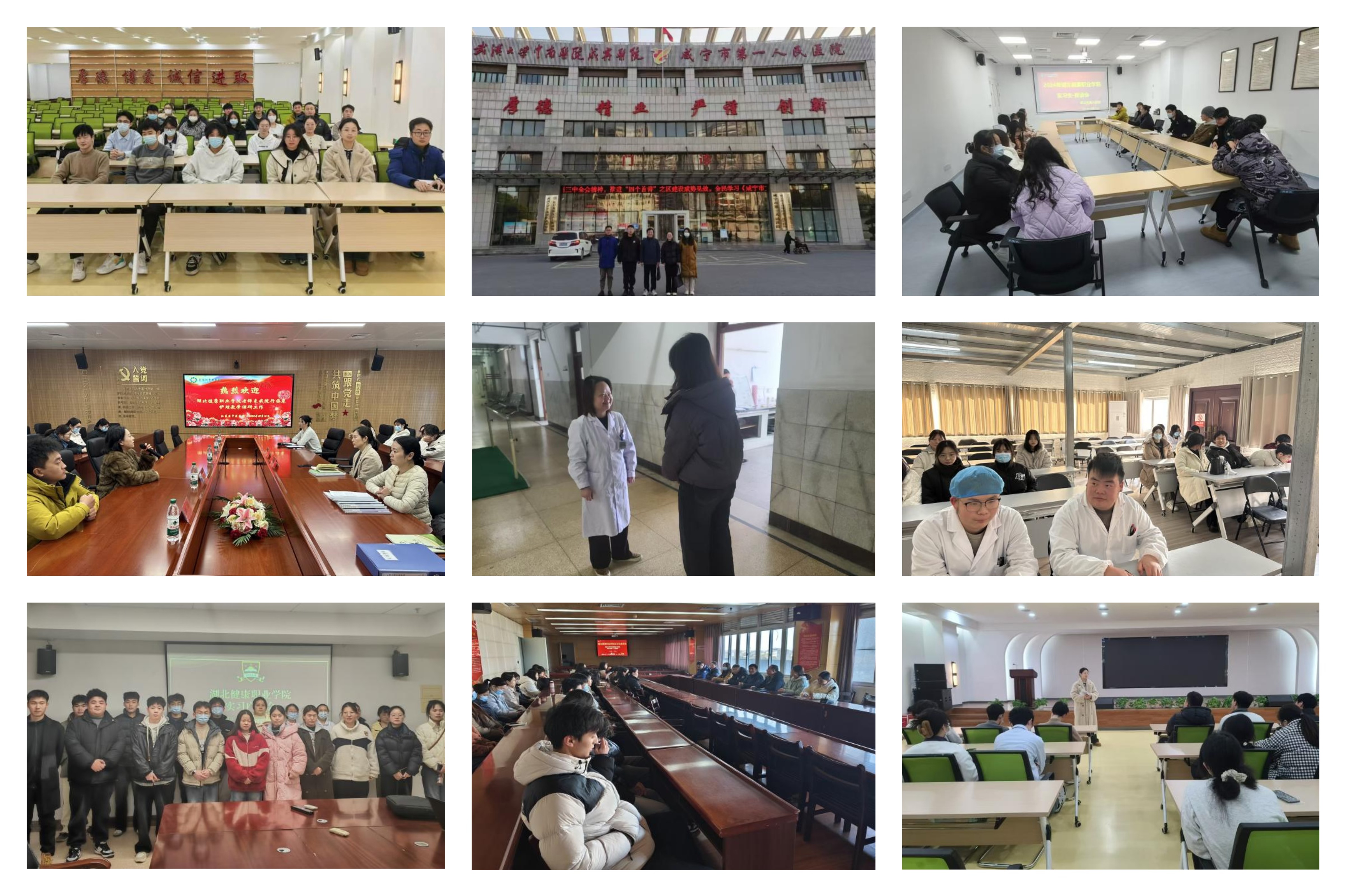 12月13日至19日,刘贞、王筠贻、杜德国、杨迎春等9位实习指导老师,分别奔赴长江航运总医院、武汉市普仁医院、湖北科技学院附属二医院、江夏区第一人民医院、咸宁市第一人民医院等10家医疗机构,深入了解2022级康复治疗技术与医学检验技术两个专业的98名实习生的实习情况,为学生答疑解惑、加油鼓劲。