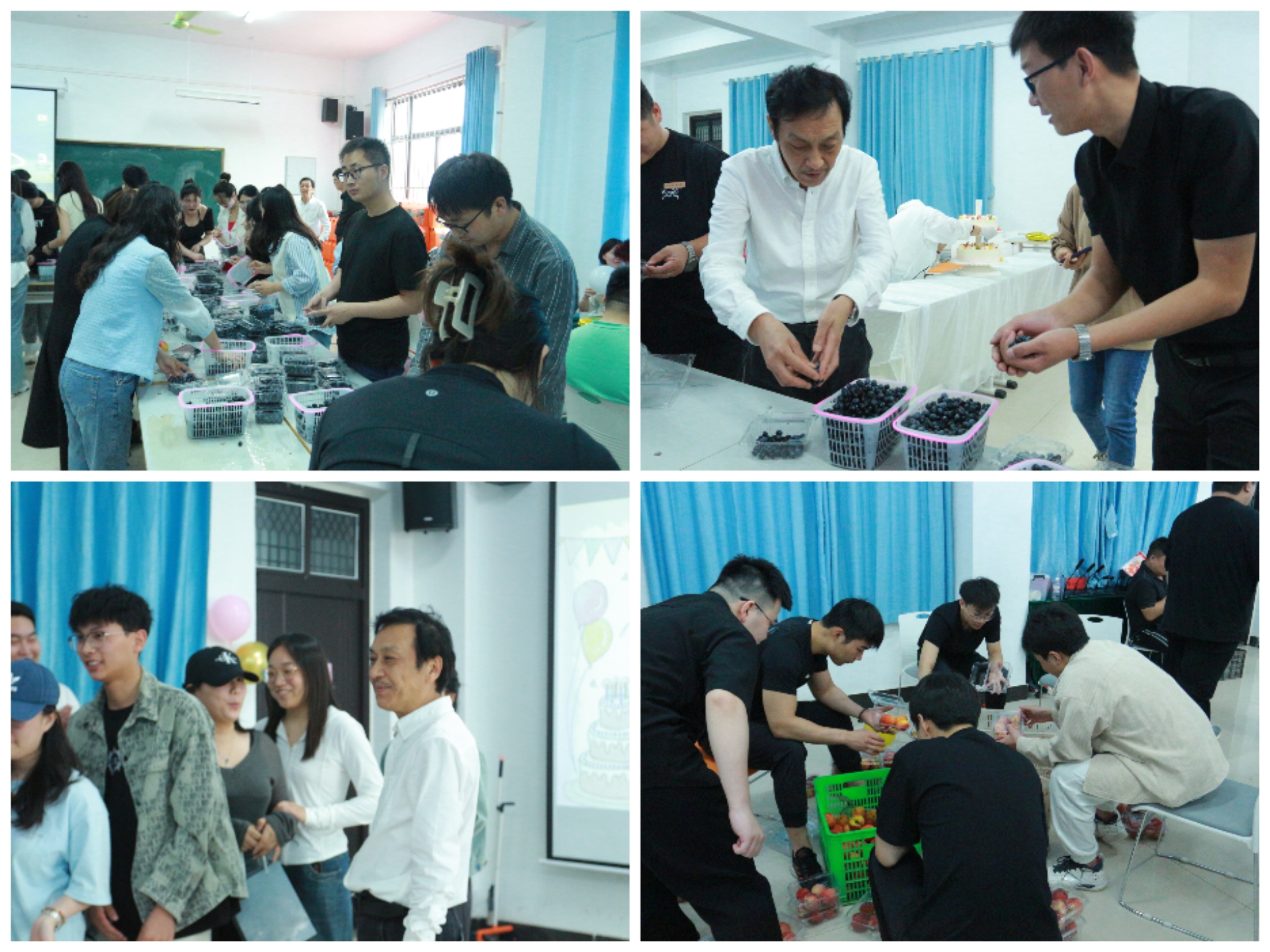 活动现场其乐融融,工会为全体教师准备了粽子、蔬果礼盒,人事处为过生日的老师准备了生日蛋糕和精美礼品。