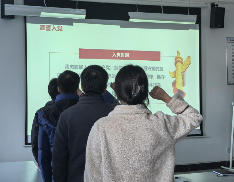 教师党小组组长胡子航带领本次全体新接收的预备党员进行了庄严的入党宣誓。