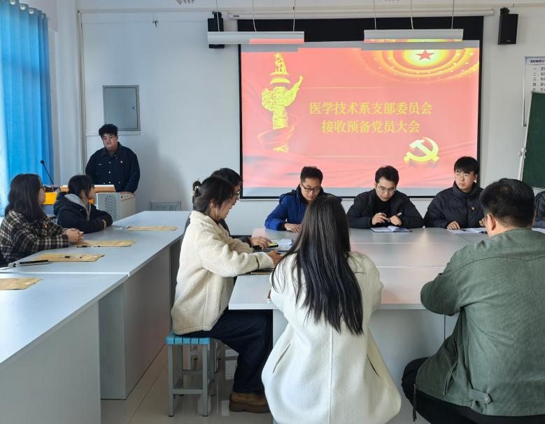 11月21日,医学技术系党支部于1号实训楼304召开接收预备党员大会。本次大会讨论了接收李炎等18位同志为预备党员的事宜。全体党支部党员以及发展对象参加大会,组织委员杨泽雷主持会议。