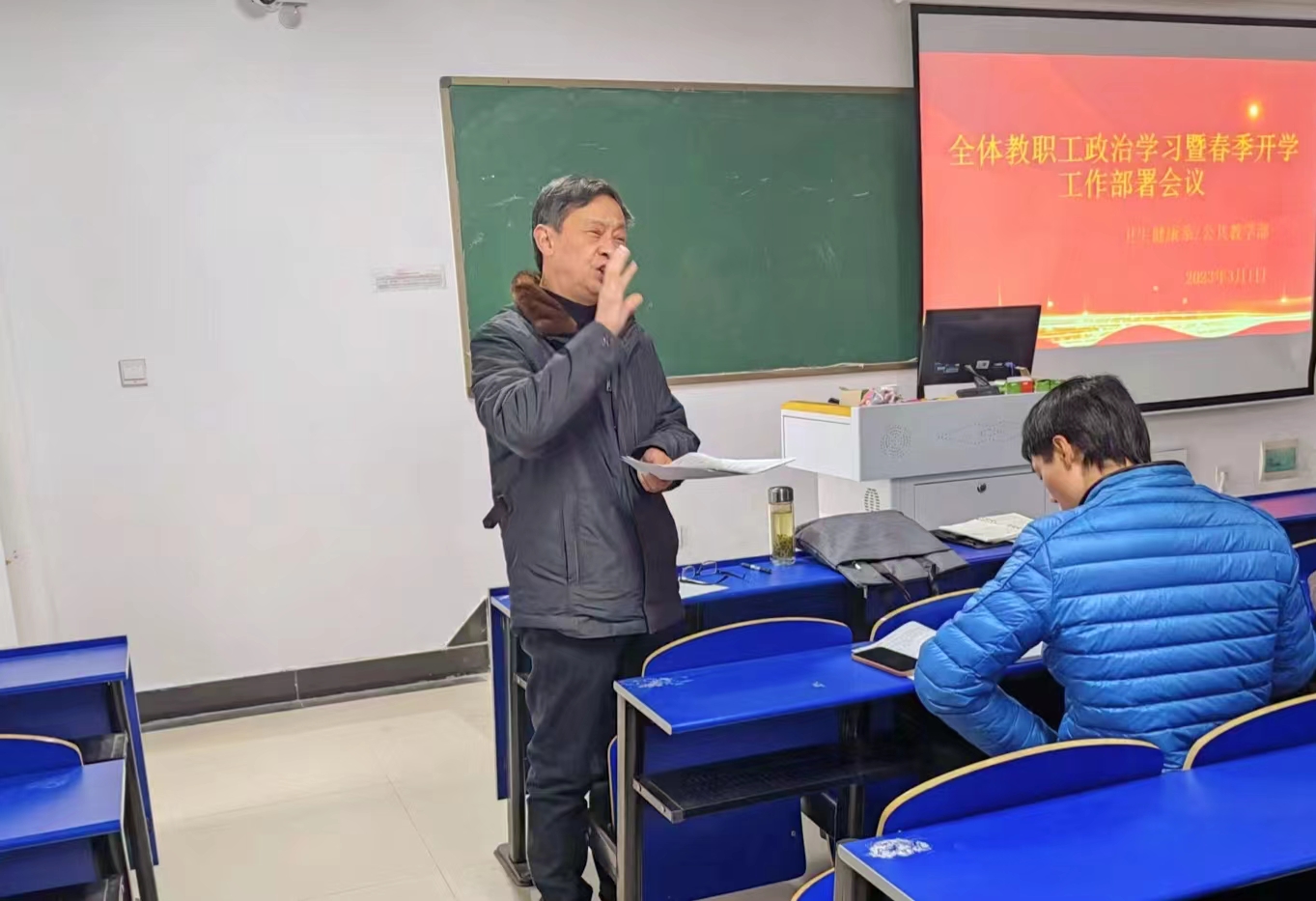 范杉主任作为系部工作的主要领导人,在工作中具有强烈的事业心和高度的责任感,他经常到课堂听课,在听课中发现问题,在教研活动中积极讨论解决问题,不断完善卫生健康系教学体系,提升教师教学水平,为学生提供一个高水平高标准的学习环境。范杉主任勉励我们在日常的工作中要不断学习,不能固步自封,努力提高自身的业务素质,以便取得更为显著的工作效果。在系部工作运转中,范杉主任强调要以团结协作作为系部工作的领导理念,系部成员要互帮互助,相互协作,把卫生健康系当做一个大家庭,同时要乐于奉献,敢于争先,对于系部下发的工作要及时高效地完成,使卫生健康系的发展越来越好。