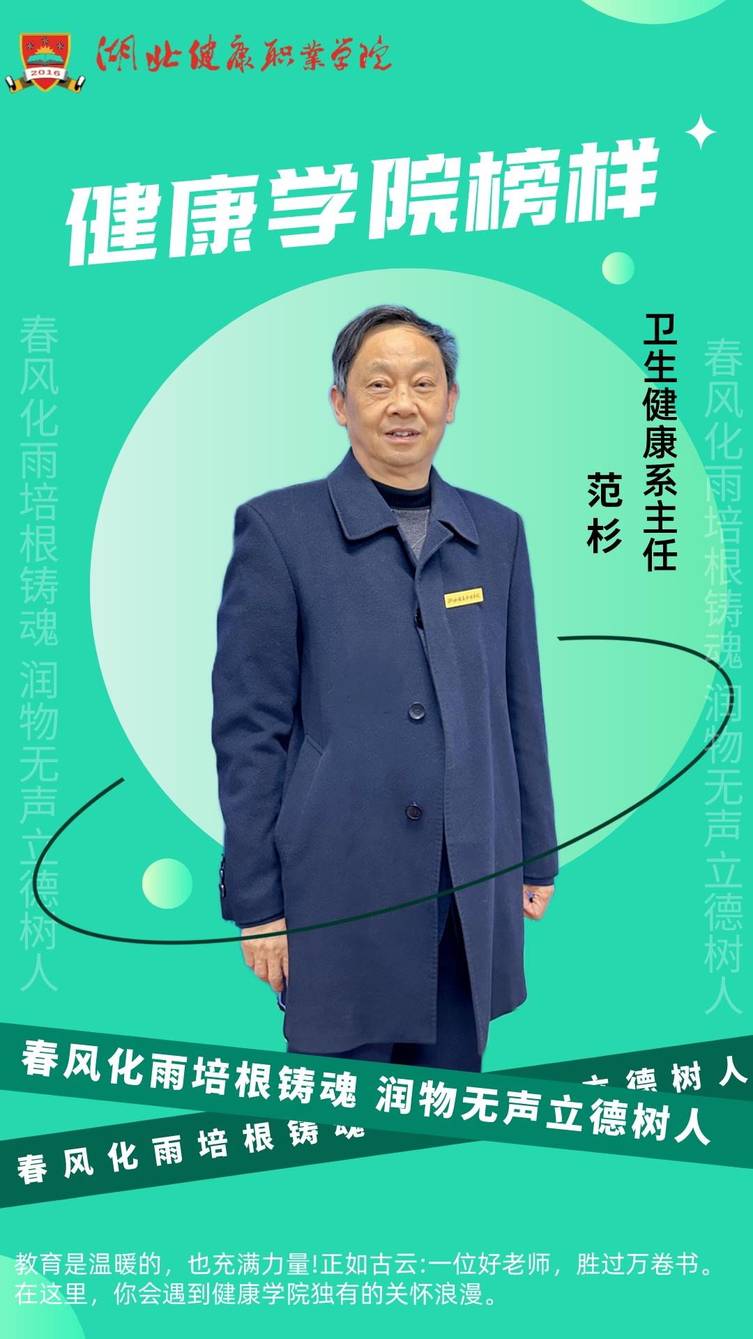 严以律己的“领航者”。他常说:“教师对我们来说不仅是一个职业,更是责任和担当,具有主人翁意识,有对学校发展的责任感、对教学教育事业的荣誉感和自豪感。在范主任的带领下卫生健康系先后获得湖北省大学生运动会800米第三名;2022年首届“幼乐美杯”湖北省职业院校早期教育专业保教技能竞赛团体三等奖;咸宁市2022年大中小幼班主任基本功和思政课教师教学基本功展示交流活动个人一等奖一个、三等奖两个。
