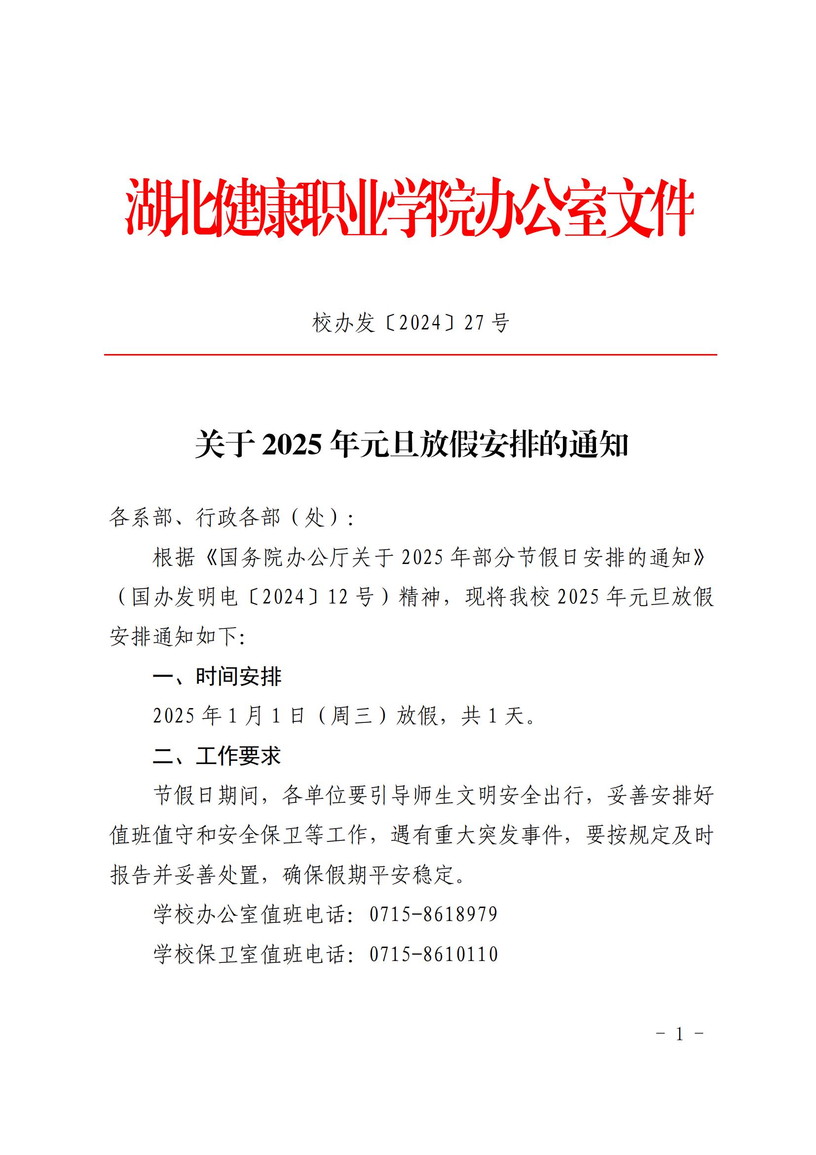 关于2025年元旦放假安排的通知