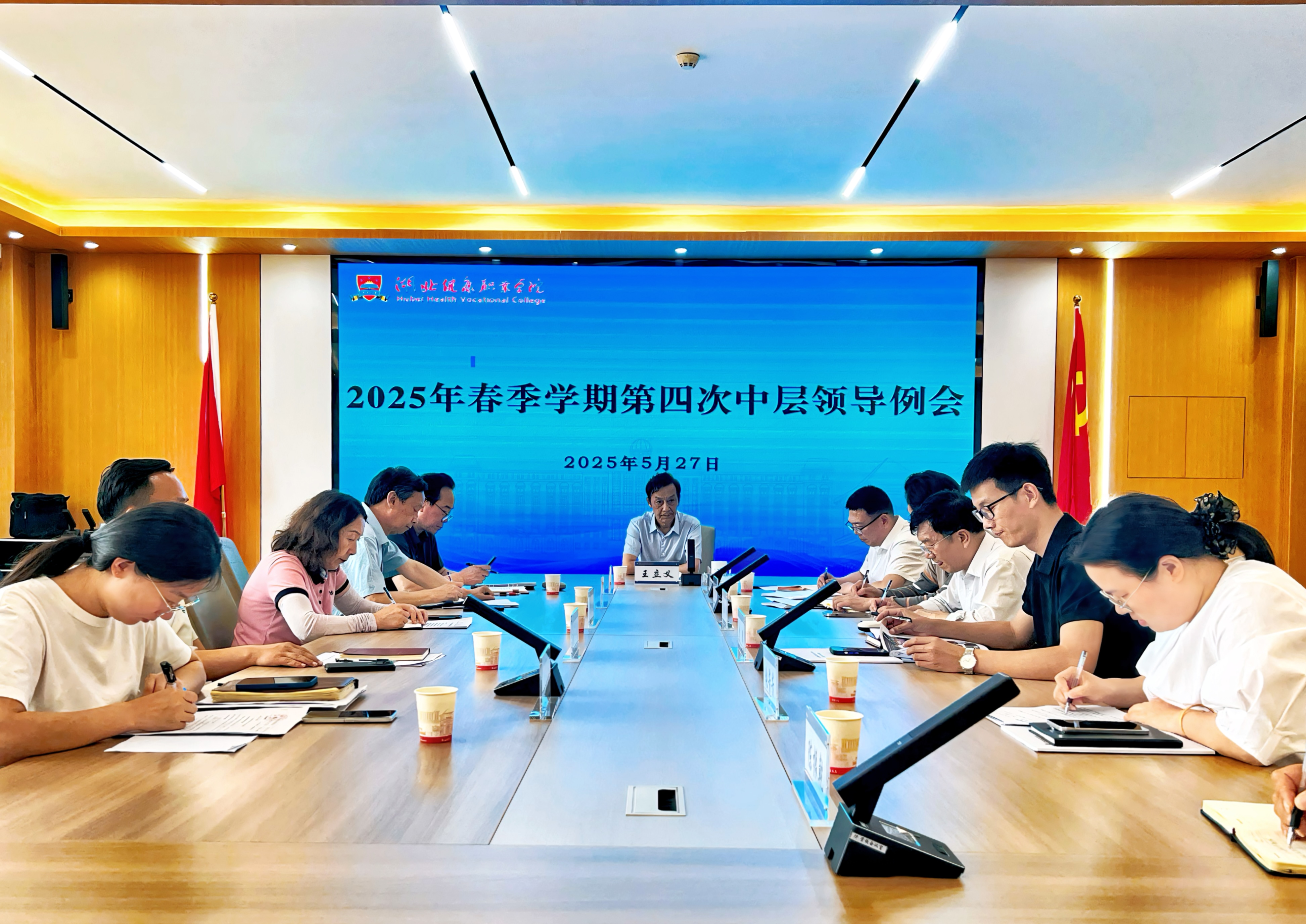 5月27日,我校在4号教学楼2楼学校会议室召开2025年春季学期第四次中层领导干部例会,全体中层及以上领导参加会议,会议由党委副书记、校长王立义主持。