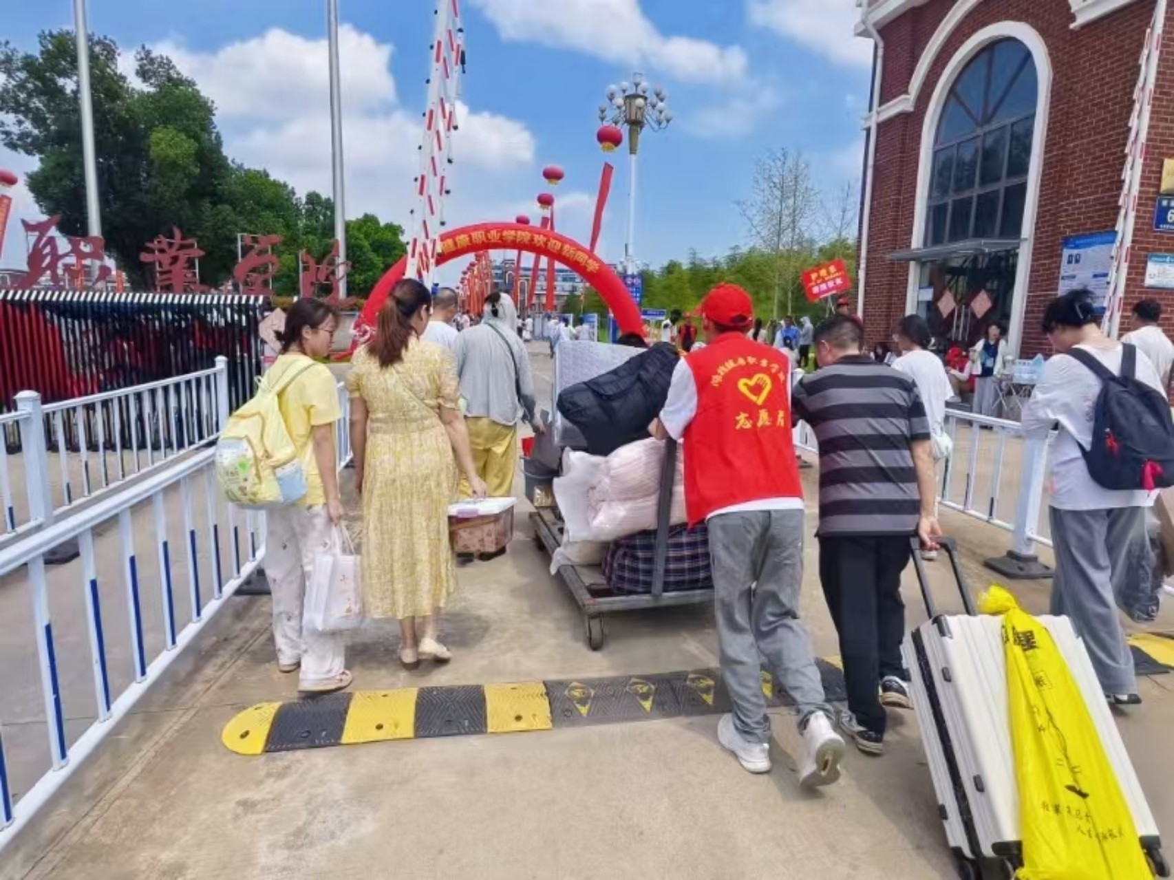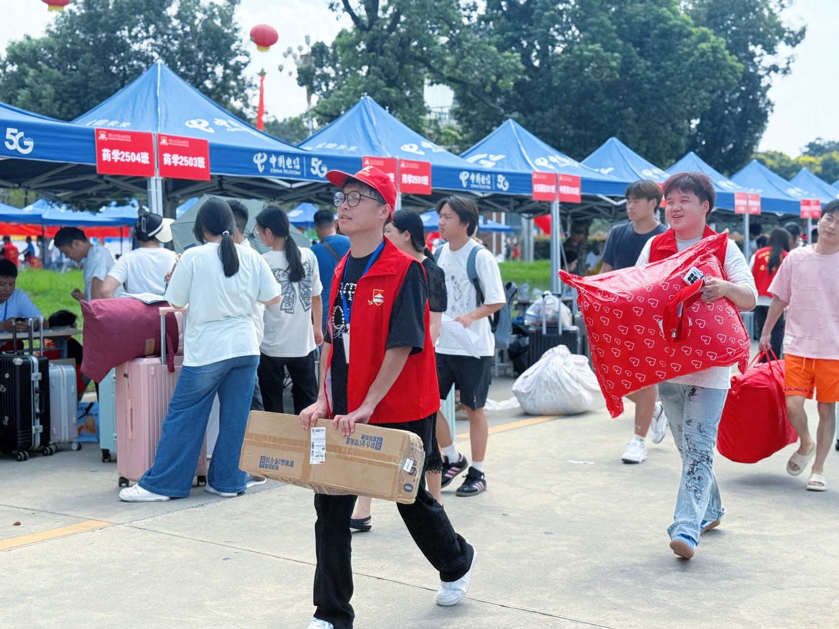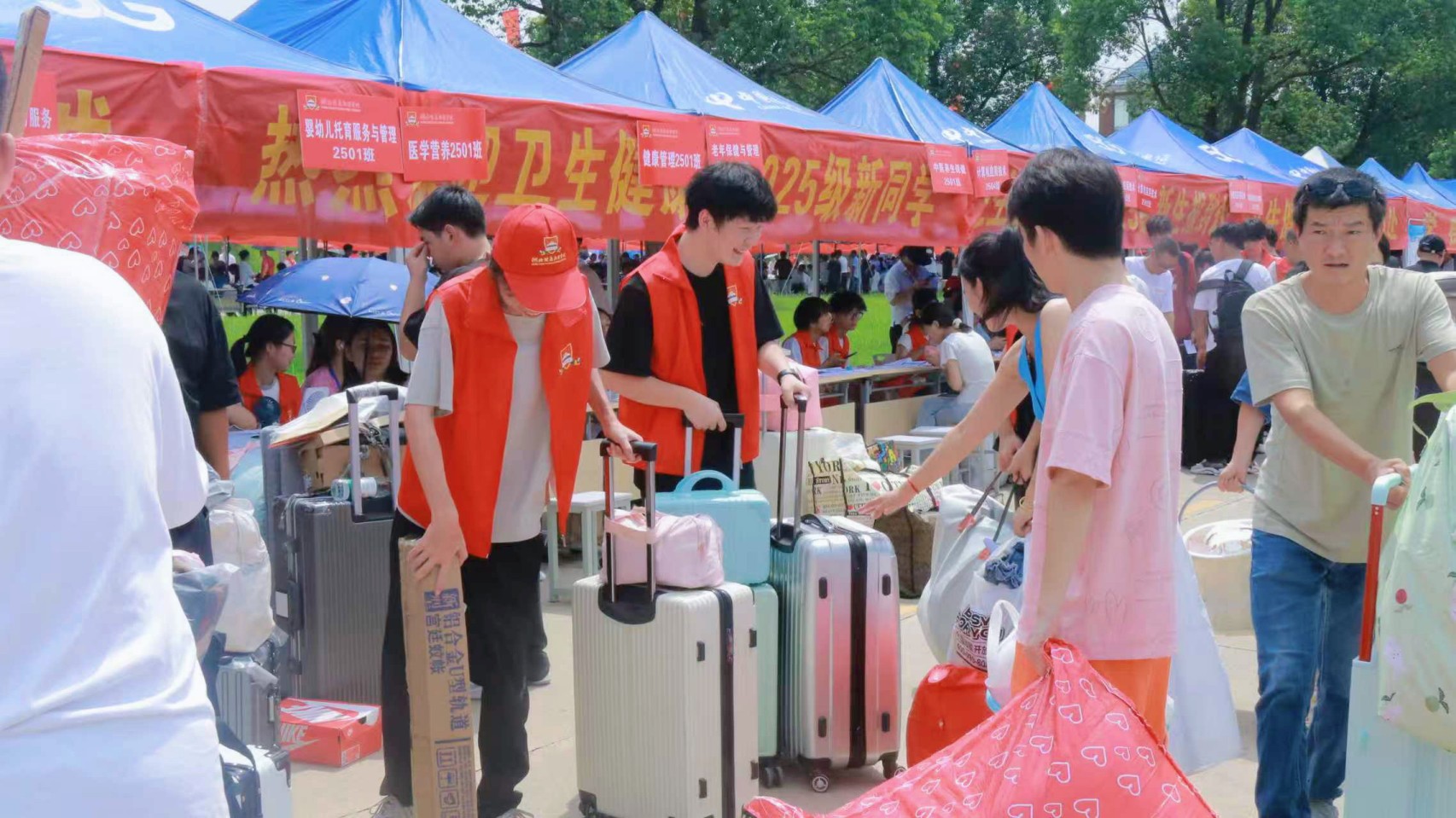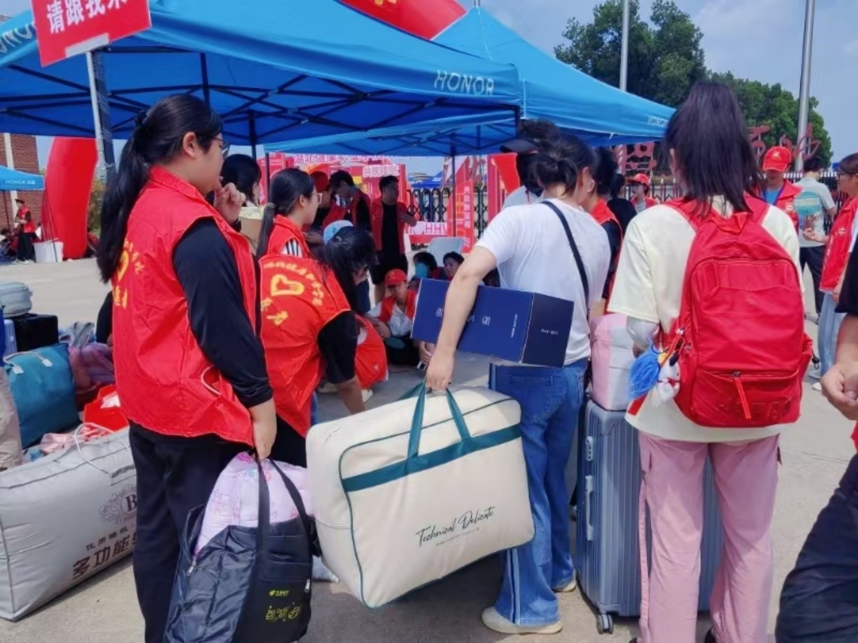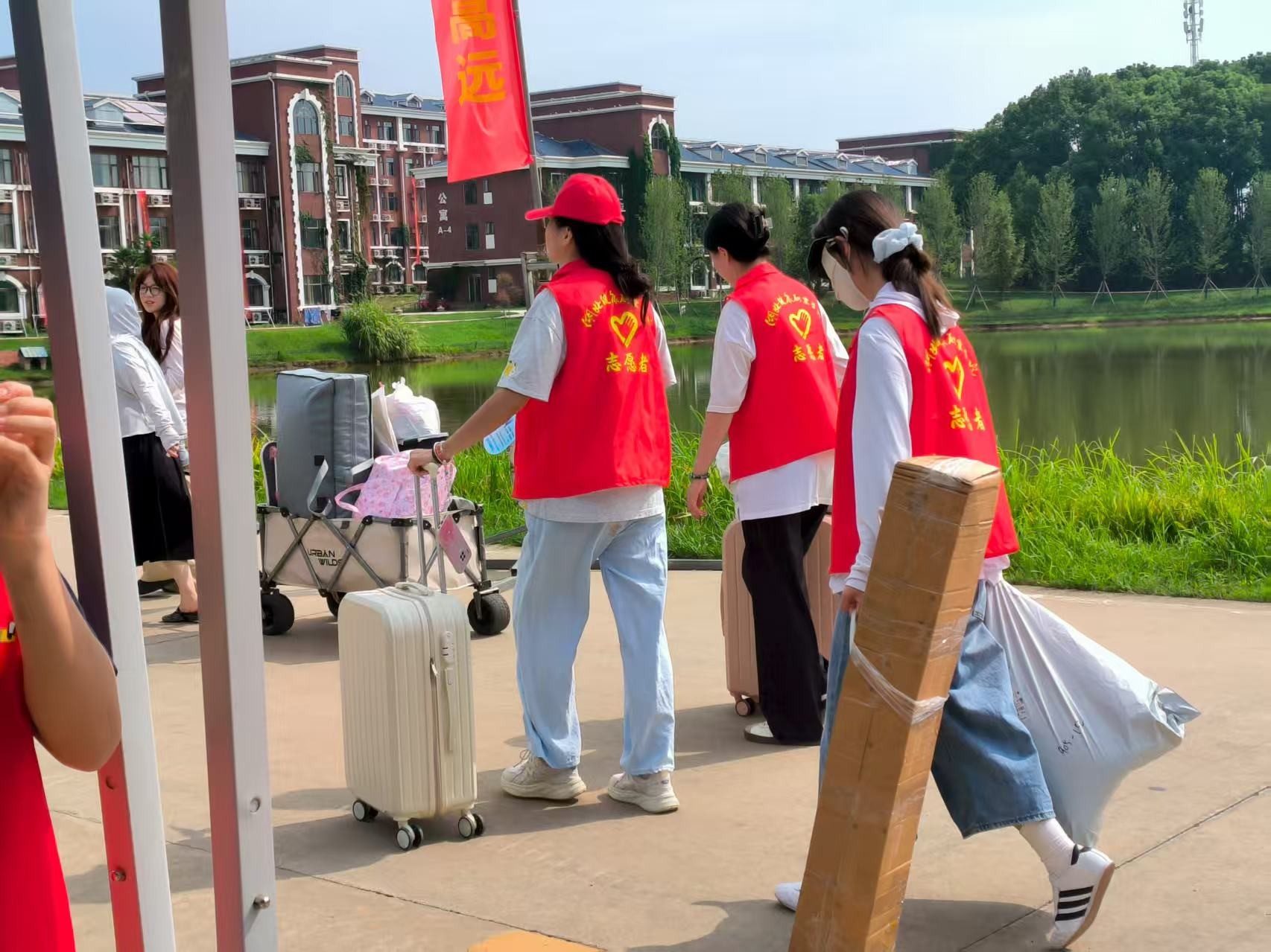 红马甲穿梭 迎新忙不停