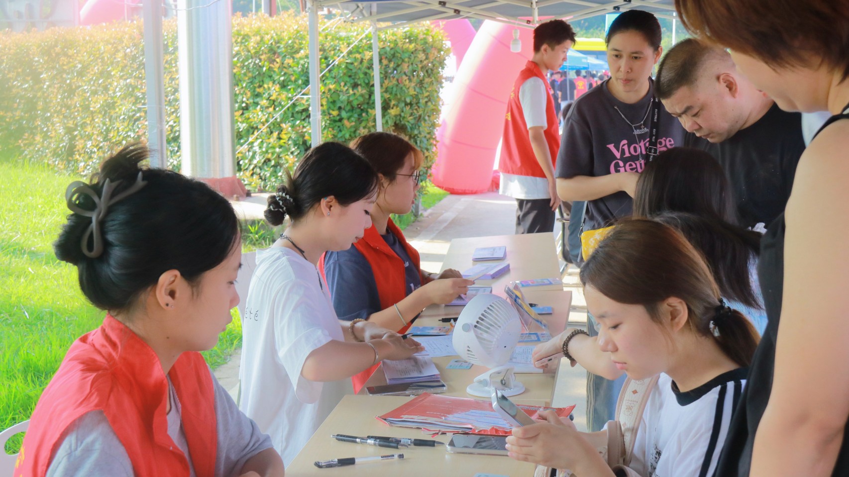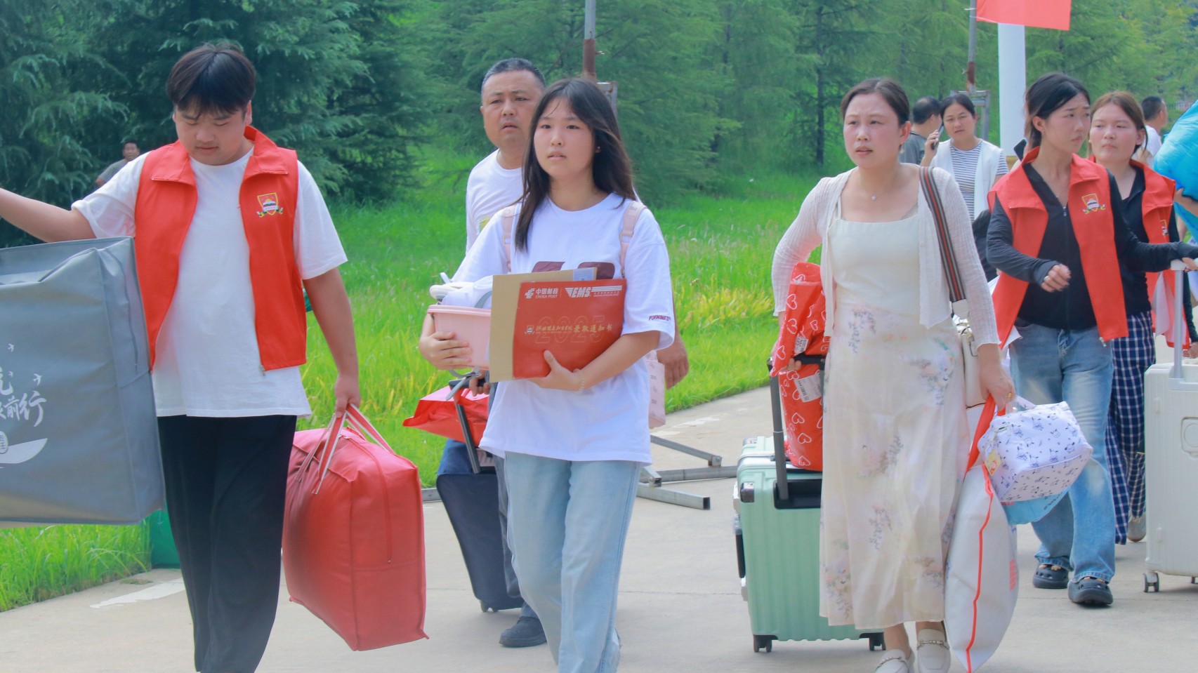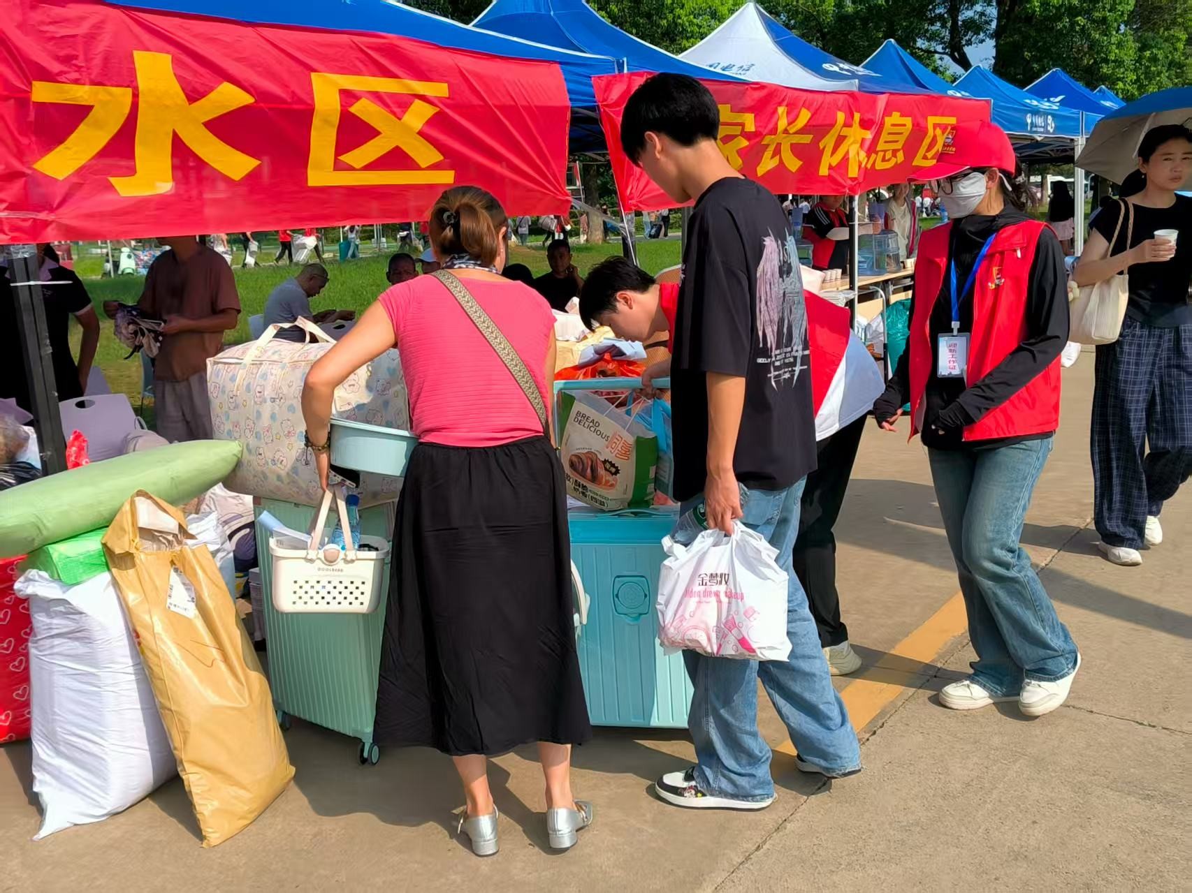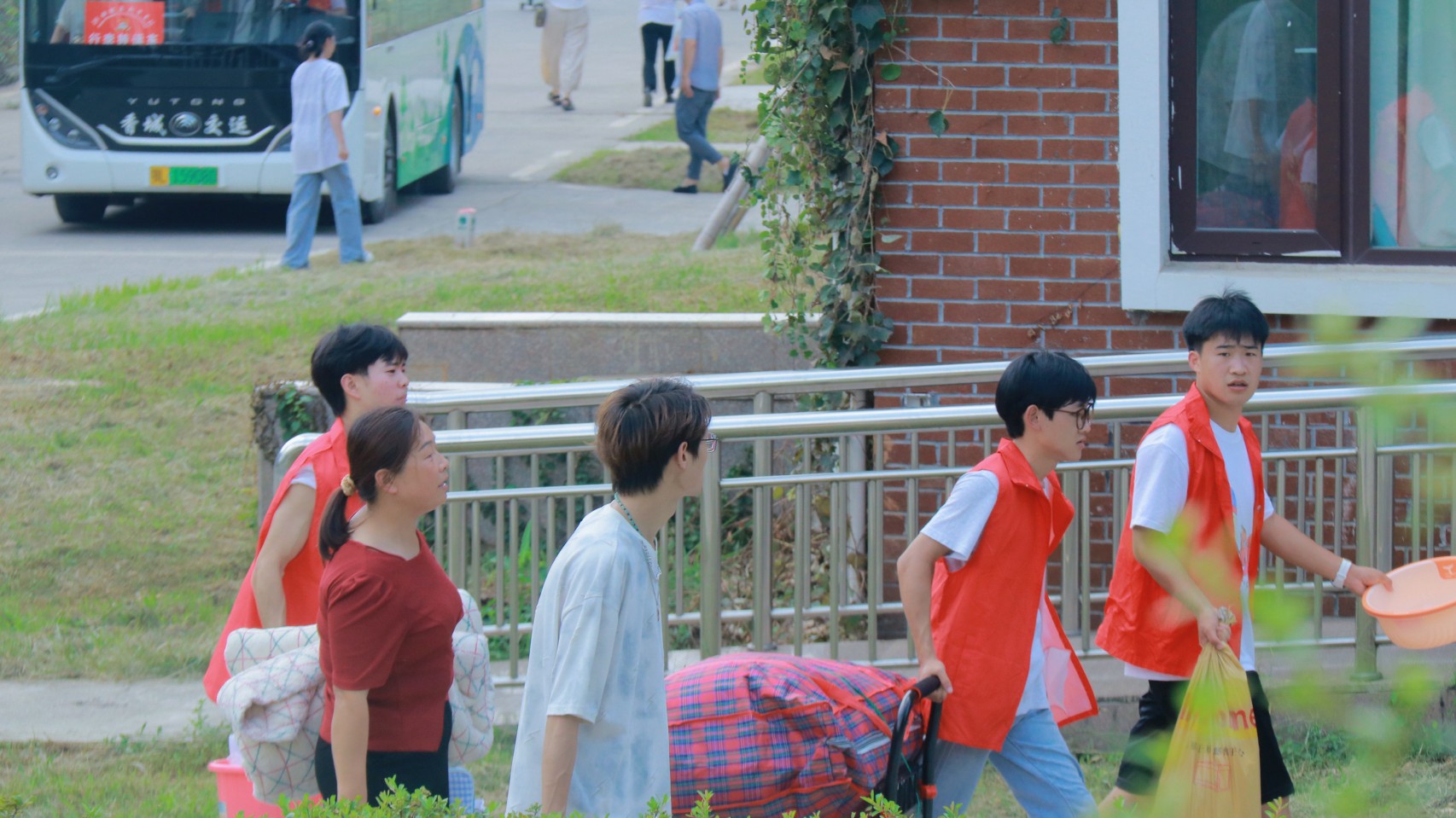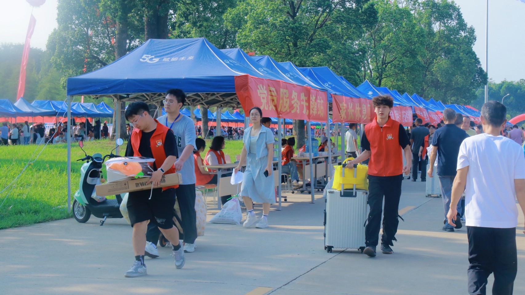 红马甲穿梭 迎新忙不停