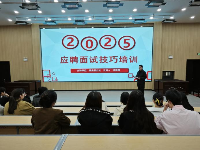 在实战技巧环节,培训聚焦三大核心能力:面试前的企业调研与岗位分析、面试中的15类常见问题应答策略以及职业礼仪与形象管理。杨老师特别结合专业特点,通过真实案例演示如何展现专业素养。“面试不仅是能力考核,更是双向沟通的艺术。”杨泽雷强调,应试者需要建立积极心态,将面试视为展示学习成果和实践能力的平台。他建议学生通过“熟悉化”训练消除紧张感,以自信从容的状态应对挑战。