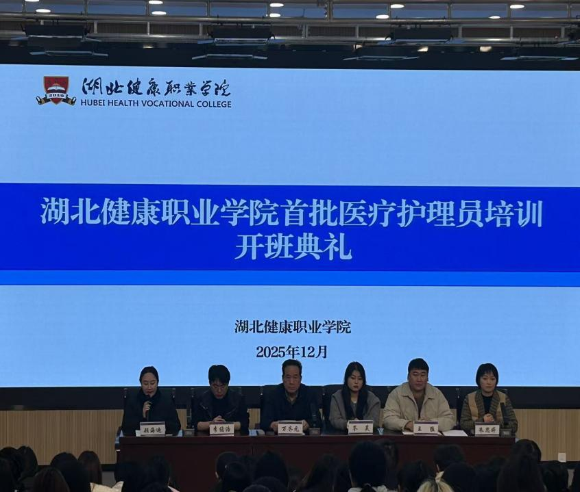 护理系基础教研室主任朱思婷介绍,培训严格遵循湖北省卫健委《医疗护理员培训大纲》,采用“线上+线下”融合教学模式,由专业师资授课,内容兼具科学性、规范性与实用性。典礼后随即开展第一课《医疗护理员的职业定位与伦理规范》,12月20日至21日,学员完成轮椅转换、经口喂食喂水、穿脱衣物等核心实操项目实训。